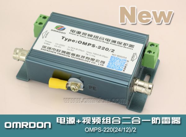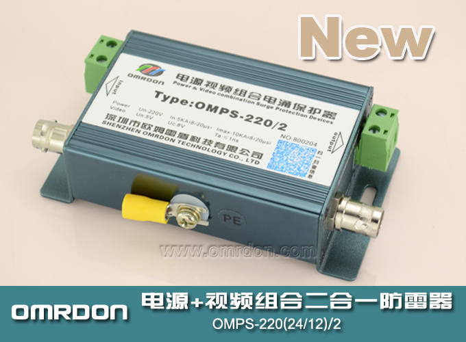 歐姆雷盾(OMRDON)CCTV安防監控系統模擬攝像機二合一防雷器(又稱:二合一電涌保護器、二合一浪涌保護器、二合一避雷器)是依據IEC和GB標準設計,適用于不帶云臺控制的模擬攝像機(Analog Camera)的電源和信號線路的雷擊電磁脈沖(LEMP)電涌保護,是一體化多功能電涌保護器。主要于對監控模擬攝像機的電源、視頻線路實施電涌保護,可充分保護最新技術的監控設備。