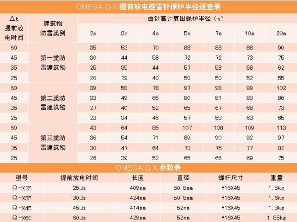 設Ω-X提前放電避雷針的啟動搶先時間為△T,則上行先導距離△L=V×△T