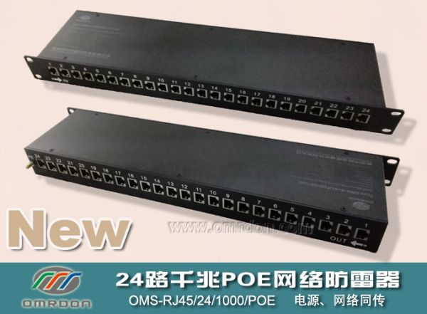:深圳市歐姆雷盾科技有限公司 » 產品展示 » 電源信號組合型防雷器 » 24路千兆POE網絡防雷器(1000M POE網絡防雷器、千兆POE交換機防雷器) OMPS-RJ45/POE/1000/24