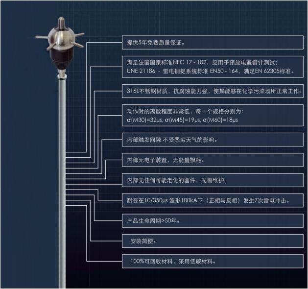 • 法蘭西提前放電避雷針放電原理