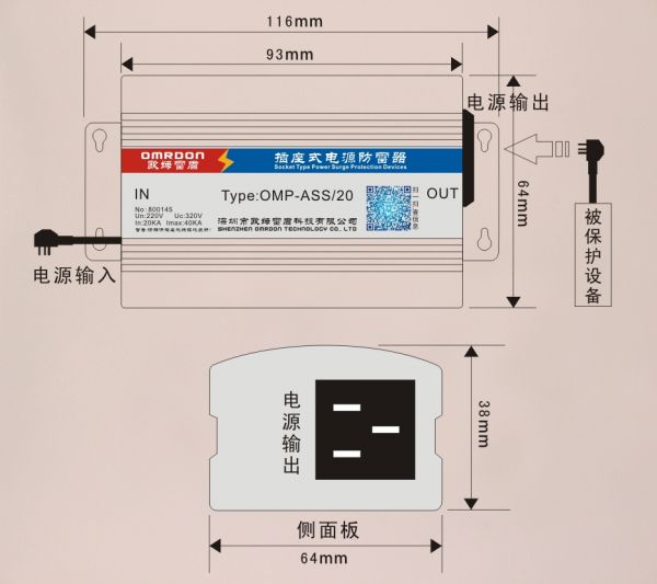 歐姆雷盾(OMRDON)OMP-ASS/20三級插座式電源防雷器(浪涌保護器、電涌保護器、過壓保護器),用于交流220V配電設備的防雷保護,如計算機、通訊、安防、監控系統設備等終端設備,本產品外型美觀,安裝接線方便,維護簡單,能在較惡劣環境下長期穩定工作;該產品用于交流配電設備的輸入端,防止雷擊或浪涌等因素產生的感應過電壓、過電流現象對系統或設備造成的損壞。