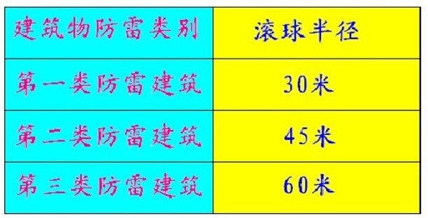 接閃器(避雷針,避雷線,避雷帶,避雷網(wǎng))的防護范圍一般用滾球法明確定,不同的防雷等級所用的半徑不同,如下圖所示